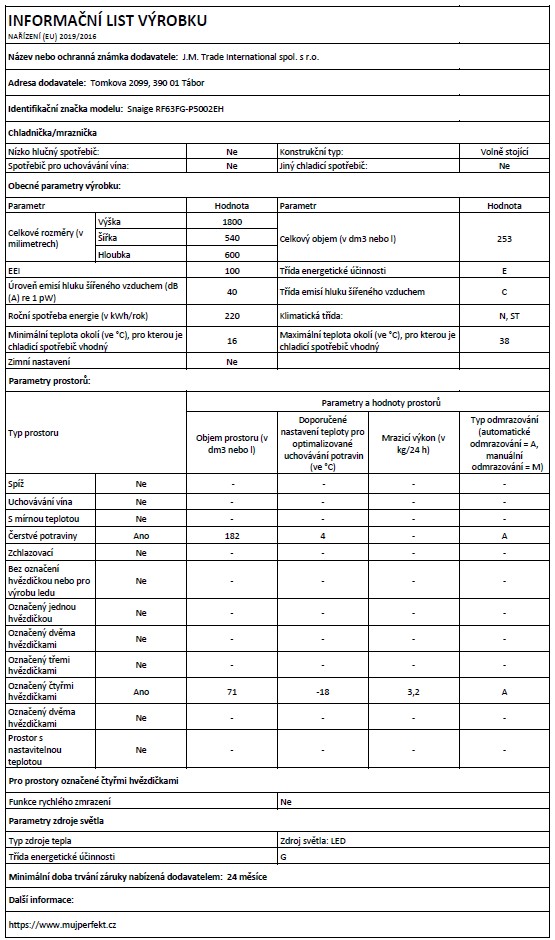 • chladnička s mrazničkou dole• NO FROST technologie• výška 180 cm• šířka 54 cm• hloubka 60 cm• objem chladničky 182 litrů• objem mrazničky 71 litrů• energetická třída E• barva nerez• mrazící kapacita 3,2 kg/den• doba skladování při vypnutí 8,5 hodin• spotřeba den/rok 0,603 kWh / 220 kWh• klimatická třída N, ST• hluk 40 dB• nastavitelné poličky z tvrzeného skla• ergonomické vnitřní LED světlo• EAN